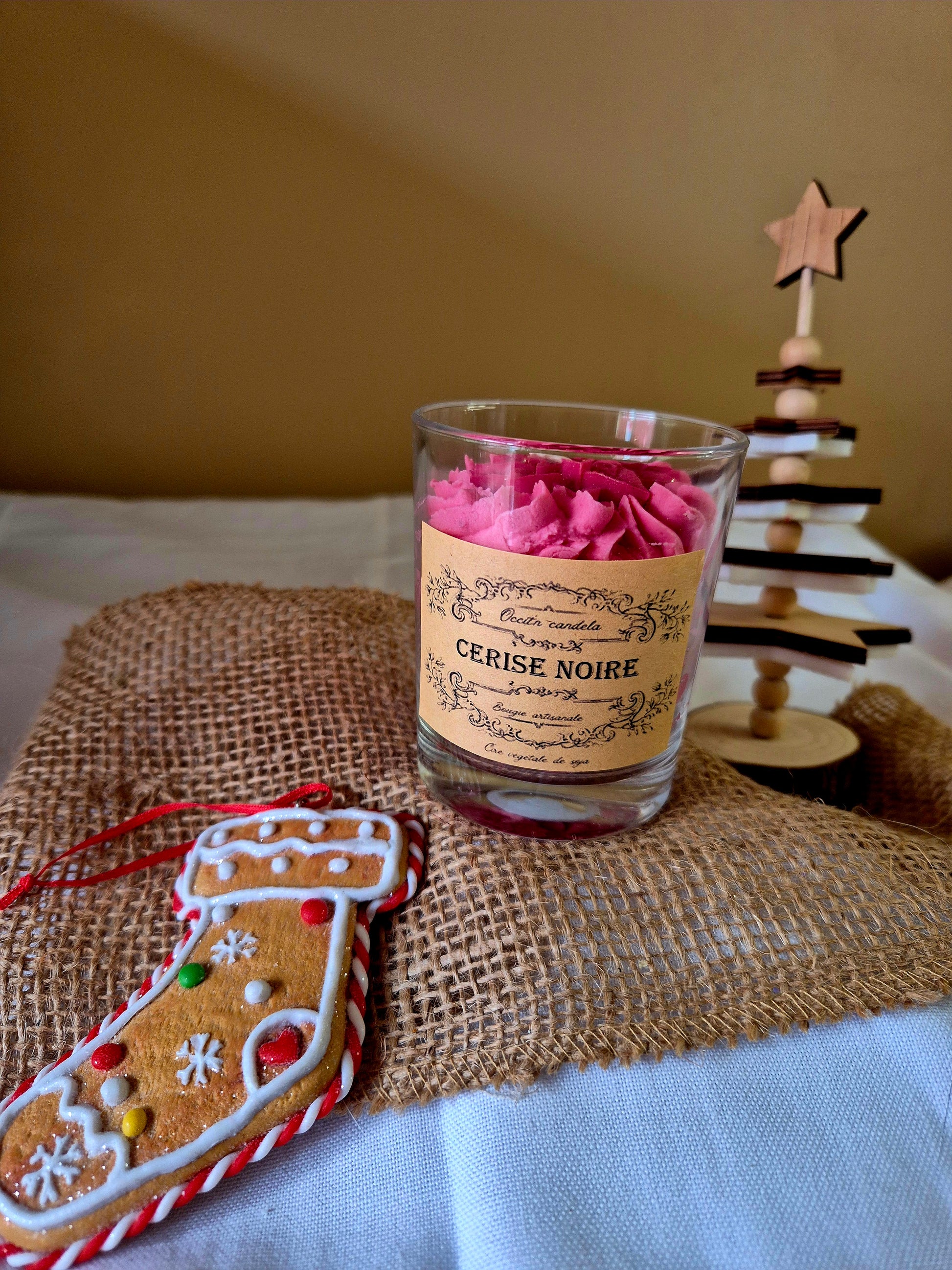 Photo non contractuelle, chaque bougie est fabriquée à la main, les couleurs et les décors peuvent variées légèrement selon les saisons et ma créativité.