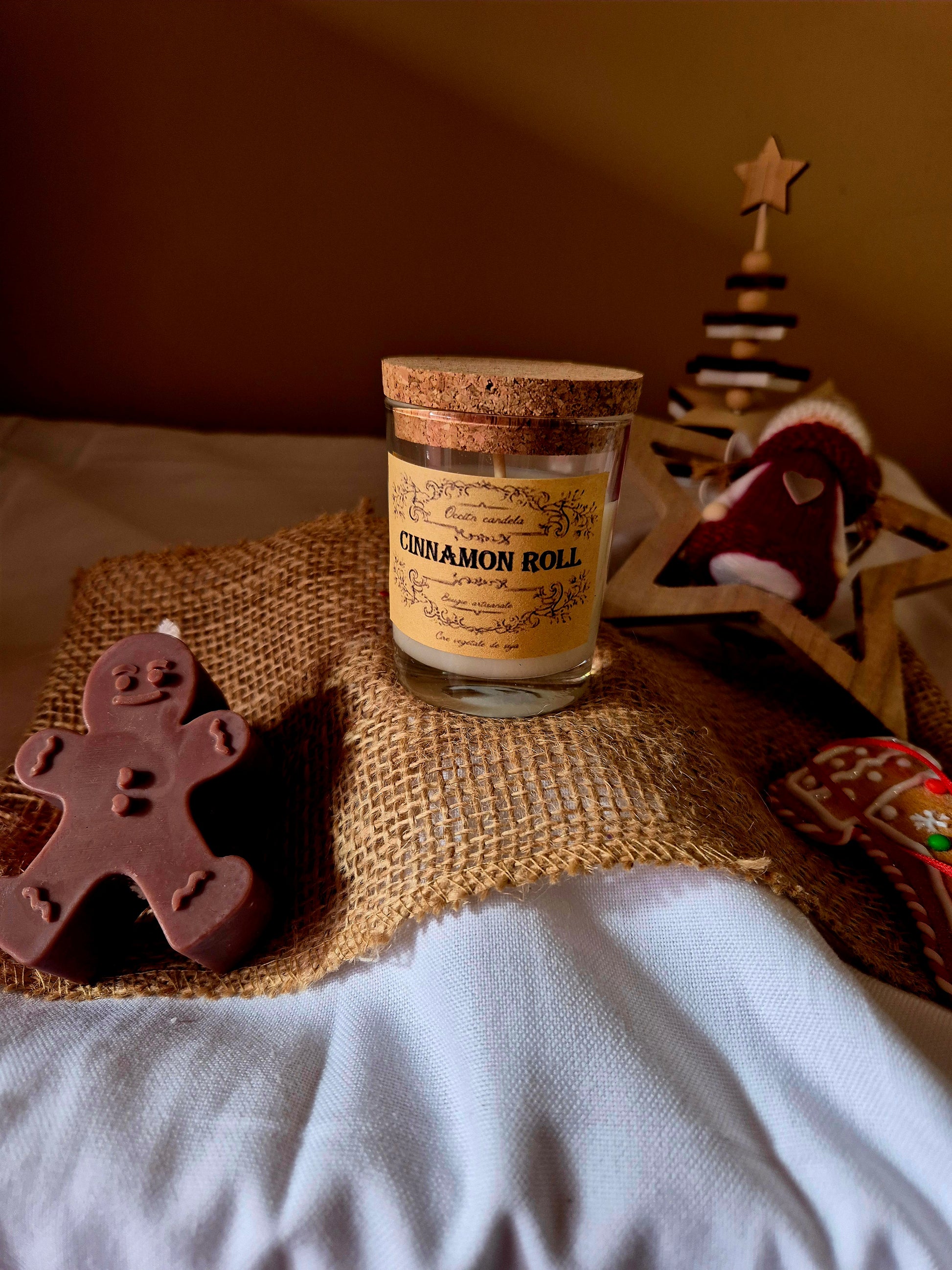 La bougie cinnamon roll réchauffe l'atmosphère avec ses notes épicées et enveloppantes.
