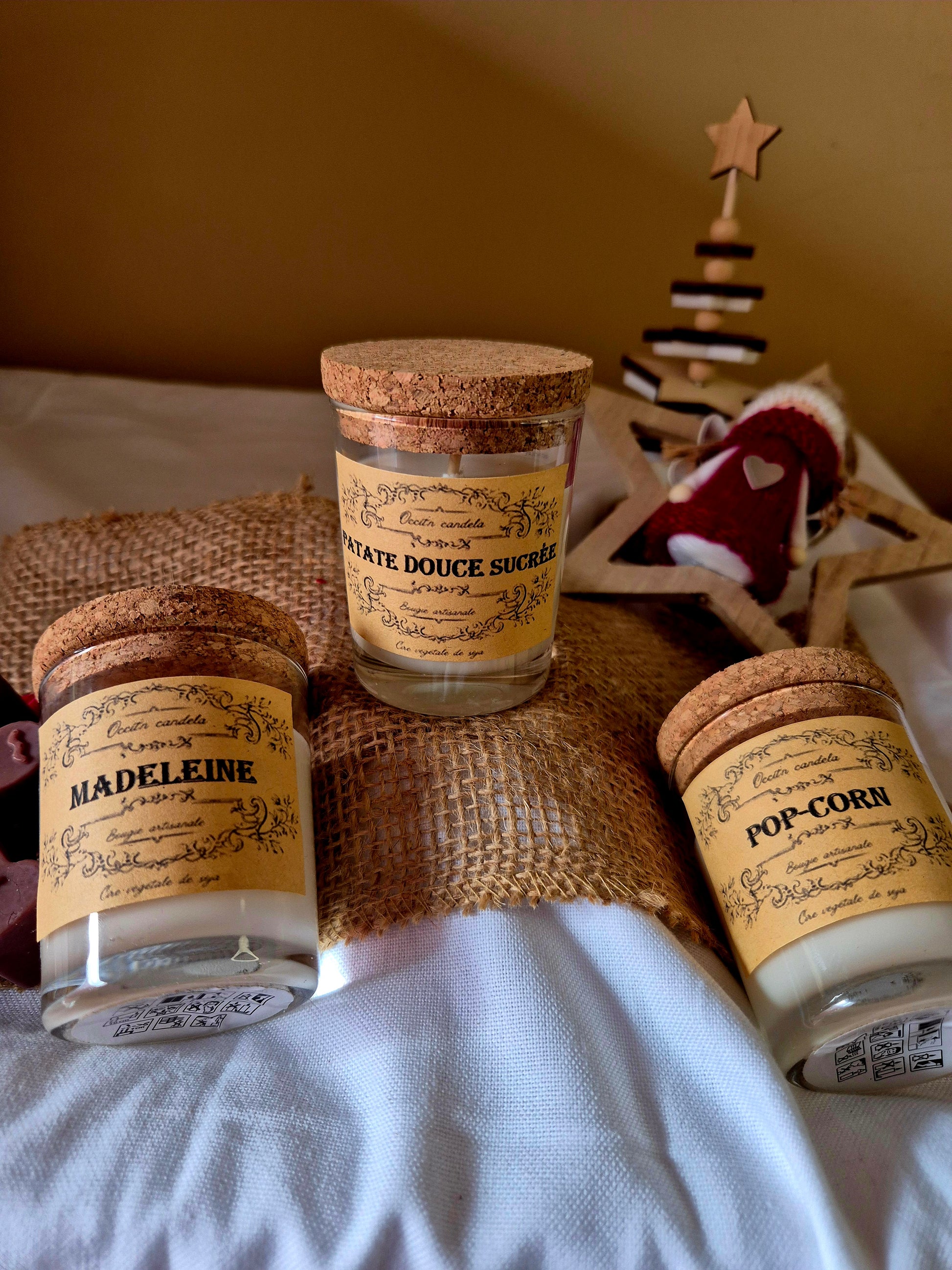 Photo non contractuelle, chaque bougie est fabriquée à la main, les couleurs et les décors peuvent variées légèrement selon les saisons et ma créativité.