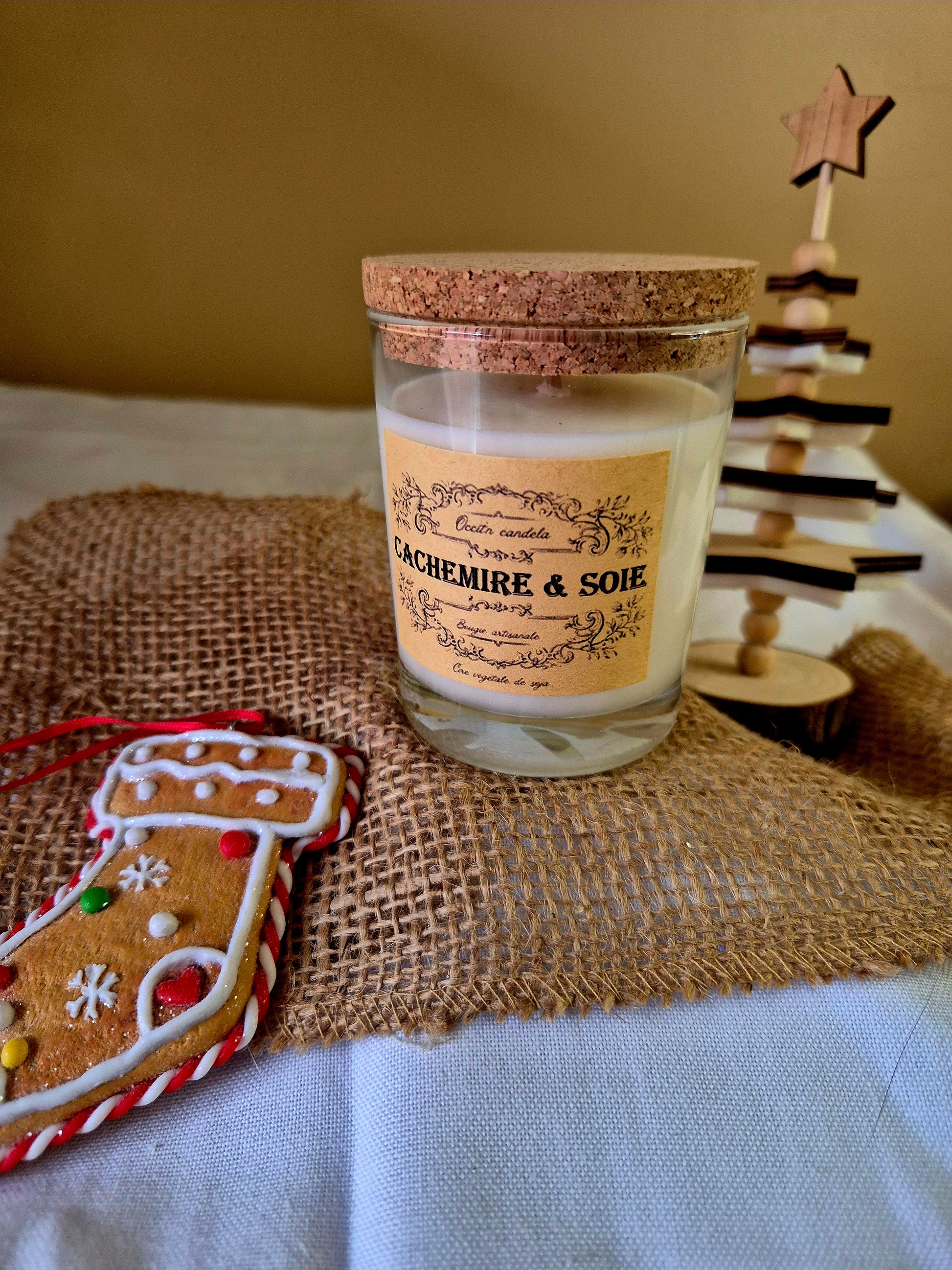 Une bougie blanche délicate et élégante au parfum doux et sensuel de cachemire et soie.